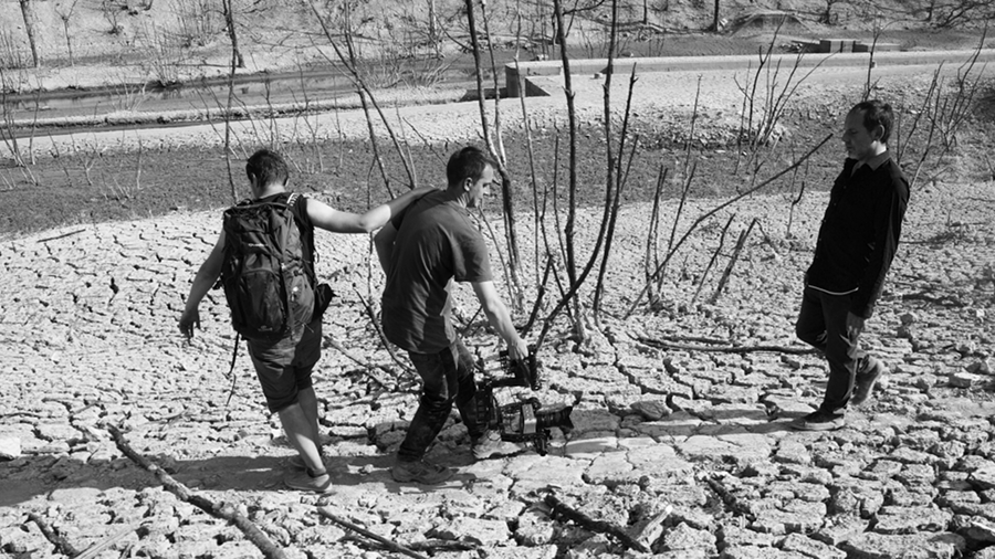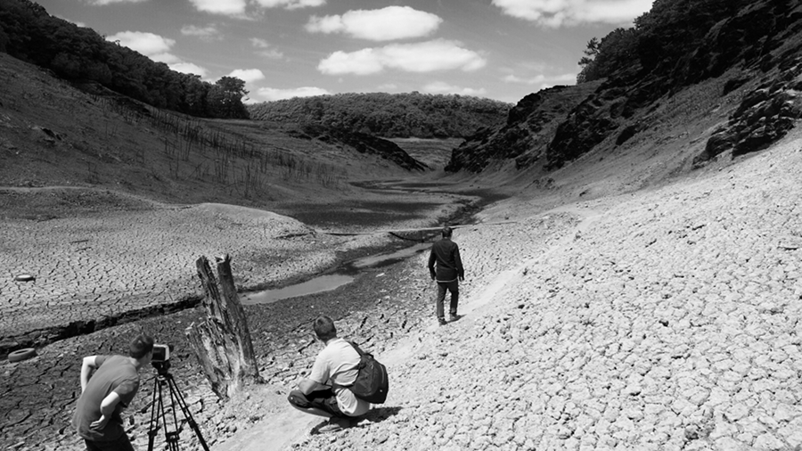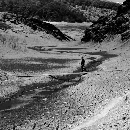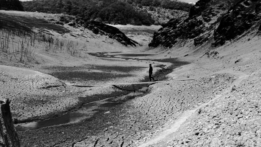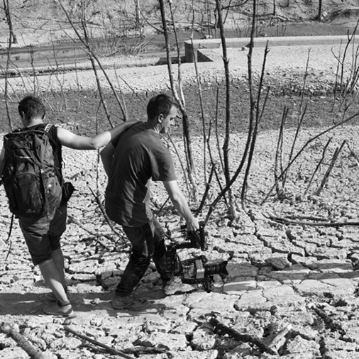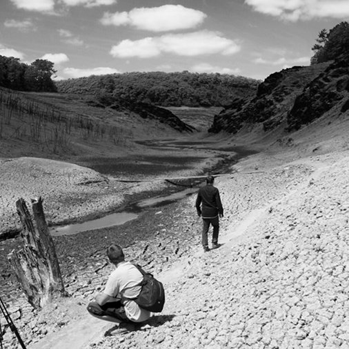 Le lac asséché laisse place à un paysage lunaire exceptionnel, décor surréaliste qui ne resurgira pas avant au moins 60 ans (...)